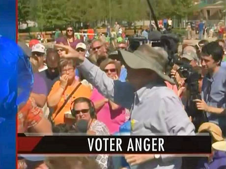 A Des Moines Register blog post, “Activist group vows to heckle others the way it did Romney,” identified the man CBS’s opening teaser showcased as a typical voter: