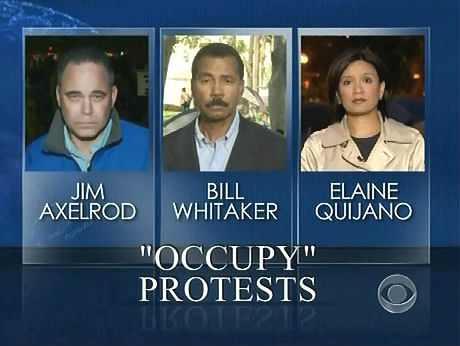 Following a story from Manhattan, Pelley and reporter Bill Whitaker trumpeted the economic diversity of the protesters. “The protesters claim that they represent 99 percent of Americans against the wealthiest one percent,” Pelley announced. “In Los Angeles, Bill Whitaker is finding protesters from nearly every walk of life.”