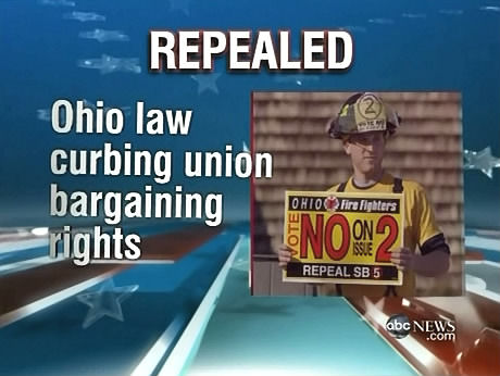 And in Ohio, voters lifted a curb on bargaining rights, freeing up union activity among public employees. And over in Arizona, voters recalled the architect of that state’s tough immigration law, Senate President Russell Pierce. The message last night seemed to be that voters are not that interested in ideological showdowns at a time when their number one concern is coming together to create jobs.