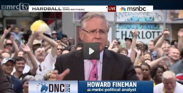 Playing to a crowd of Democrats in Charlotte cheering on Democratic operative Chris Matthews as he hosted his MSNBC program, Howard Fineman blurted “I survived Tampa and am now glad to be here in Charlotte,” before he derided the Republican gathering: “That convention was like dropping a bowling ball in a sand box.” (An apparent reference to the lack of a post-convention bounce in the polls for Romney.)