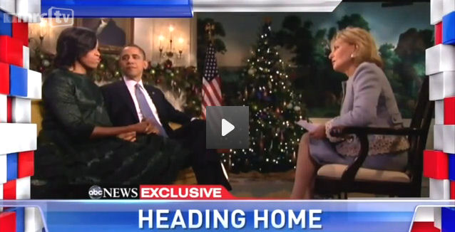 The silly Walters session with the Obamas, which ran on Wednesday night’s December 26 Nightline as “Christmas at the White House with Barbara Walters,” was originally scheduled to air as a 20/20 special on Friday night, December 14, but had to be postponed because of the mass murder that day which led to an ABC News special that night.