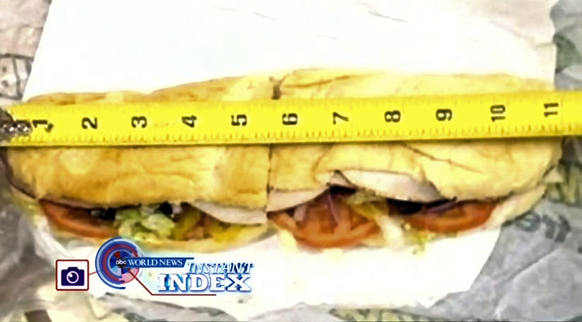 And now at the top of our Instant Index tonight is that apology from Subway. Fans of the foot-long sandwich, you may recall, reported that some of those sandwiches are falling short by one inch. 11 inches, not 12 inches long. Well today, Subway said they are sorry. And they’re redoubling their efforts to assure consistency and correct length in every sandwich they serve. And patrons will still be getting out their rulers.