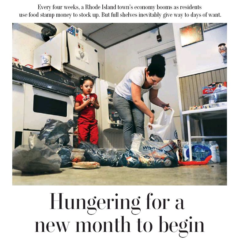 “Every four weeks, a Rhode Island town’s economy booms as residents use food stamp money to stock up. But full shelves inevitably give way to days of want,” read the subhead for the plaintive March 17 article.