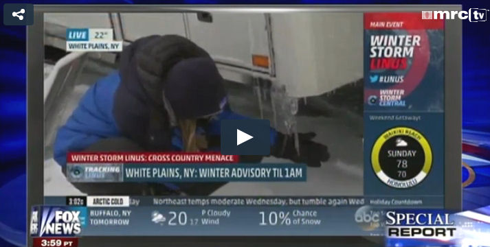 Two videos tonight: First, Weather Channel “reporters had very little trouble filling 24 hours of storm coverage,” FNC’s Bret Baier explained Wednesday night in a setting up a compilation video produced by ABC’s Jimmy Kimmel Live, but “how valuable that reporting is, you decide.”