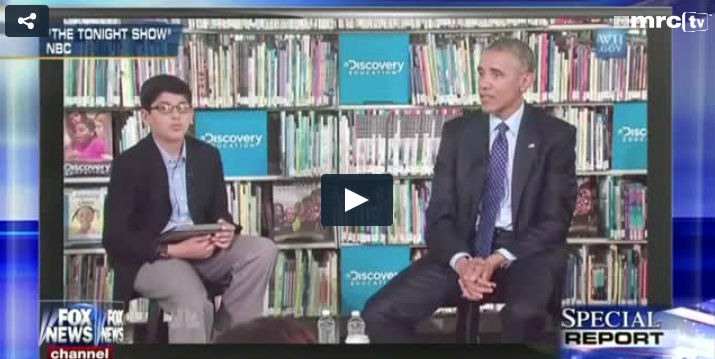 FNC’s Bret Baier ended his show this past Monday with a clip the Tonight Show featured of President Obama at an event the previous Thursday with middle schoolers at a library in Washington, DC, to promote reading. Baier explained that “when the President began to ramble a bit, the moderator gave him what those of us on live TV know as ‘the hard wrap.’”