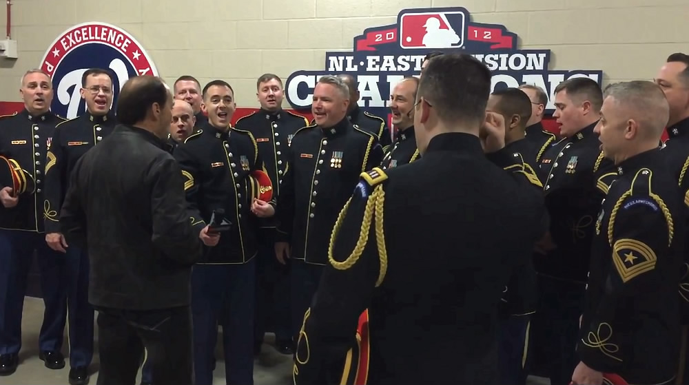 The video above shows brief scenes of Greenwood singing with the Army soldiers as well as comments from Greenwood and those Army singers.