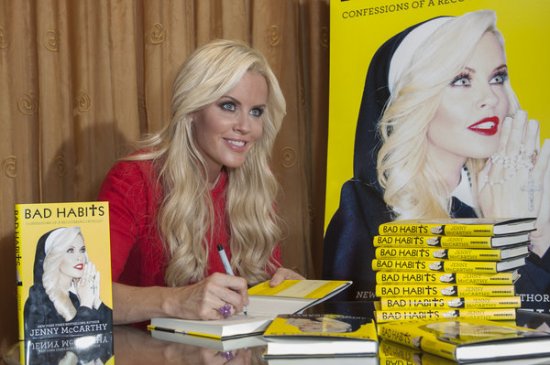 Exhibit A of today’s kind of author: Jenny McCarthy, the former Playboy centerfold who’s parlayed her nudie shots into a long list of TV gigs and six best-selling “humor”/advice books (which absolutely no one might guess were written by someone else). Her latest must be her lamest. It’s called “Bad Habits: Confessions of a Recovering Catholic.” She’s wearing a nun’s habit on the cover. Original, huh?
