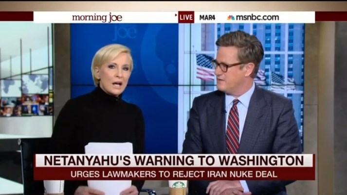 Joe Scarborough tried to calm his co-anchor by assessing the threat of a nuclear Iran, “There are those of us who believe this is the gravest threat Israel has faced since 1948. If you asked me to talk about what's the gravest risk to America, comparing ISIS to Iran, the epicenter of terrorism since 1979, and put that on the scale, I would say ISIS is more like a JV team compared to the Islamic Republic of Iran, the epicenter of terrorism since 1979, having a nuclear weapon. A nuclear weapon that not just Israel and the United States fears, but a nuclear weapon that Egypt, Saudi Arabia, Jordan, the entire Middle East fears.”