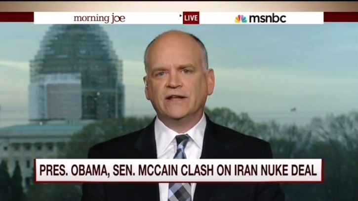Sen. John McCain recently raged against Obama’s Iran deal by calling Secretary John Kerry’s handling of the project "delusional." On Monday's Morning Joe, National Journal’s Ron Fournier was visibly vexed at McCain for attacking Obama’s sacred cow and described the former Vietnam POW’s comments as "beyond the pale. Kind of reminds me of the swift-boating of John Kerry in 2004, which I thought was outrageous."