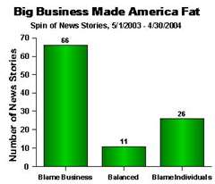 So how successful have these radical activists been at getting their agenda taken seriously by the major media? To find out, researchers with the MRC’s Business & Media Institute analyzed all 205 news stories about obesity published in The New York Times, USA Today, or aired on the three broadcast network evening newscasts and nighttime magazine shows between May 1, 2003 and April 30, 2004.
