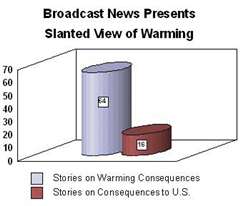 The network news bias strongly favors reporting about the potential impact of global warming over any potential impact from signing the Kyoto agreement. Reported consequences of global warming showed up in 44 percent (73 stories) of the stories while any reference to the impact of signing the pact occurred in only 13 percent (22 stories). That’s an incredible difference of more than 3 to 1.