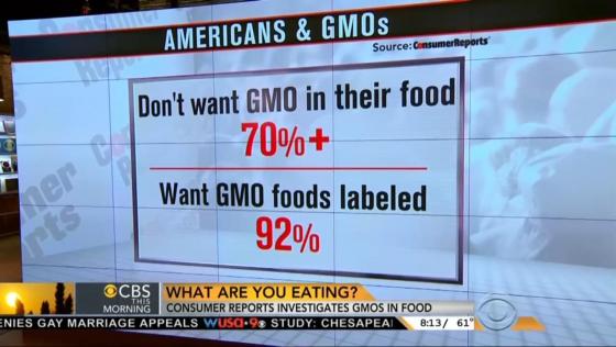 CBS This Morning co-hosts Norah O’Donnell, Gayle King and Charlie Rose interviewed Consumer Reports Consumer Safety and Sustainability Director Urvashi Rangan about GMO labeling on Oct. 7, 2014. O’Donnell began by saying, “GMO labeling isn’t required in the U.S. despite worries about the potential health risk.”