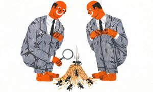 Psycho-capitalism? The overwhelmingly liberal readership of the New York Times is predictably eating up a charged story in the increasingly pretentious and hard-left Sunday Review section, "Capitalists And Other Psychopaths," by left-wing essayist William Deresiewicz, a critic who often writes for The Nation. Bringing the article to life is a cartoon of two men with painted smiles torturing ants with a magnifying glass. The text box: "Rich people are more likely to lie, cheat and break the law. No surprise."