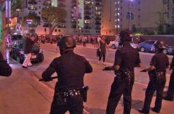 Meanwhile, the paper continues to downplay or ignore violence committed by the Occupy movement. The Times did not cover the riot by Occupy LA the night of July 12, where four officers were injured and 17 protesters arrested after protesters tried to transform a monthly "Artwalk" event into a "Chalk Walk" protest and begin hurling rocks and bottles at police officers in riot gear.