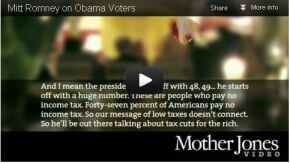 During a private reception with wealthy donors this year, Mitt Romney described almost half of Americans as “people who pay no income tax” and are “dependent upon government.” Those voters, he said, would probably support President Obama because they believe they are “victims” who are “entitled to health care, to food, to housing, to you name it.”