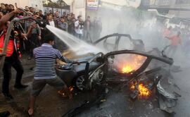 The ferocity of the airstrikes provoked rage in Gaza, where Hamas said the campaign amounted to war and promised a harsh response. It quickly launched dozens of rockets into southern Israel. Several barrages struck the city of Beersheba, shattering windows and damaging cars but causing no injuries.