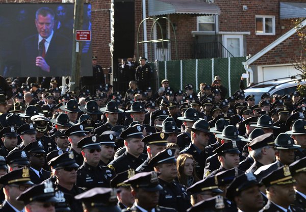 When he spoke at a police graduation ceremony at Madison Square Garden on Monday, some in the crowd booed and heckled him. This followed the mass back-turning by scores of officers when the mayor spoke on Saturday at the funeral of Officer Rafael Ramos; the virtual back-turning the day before by an airplane-towed banner (“Our backs have turned to you”), and the original spiteful gesture by officers on the night Mr. de Blasio visited the hospital where Officer Ramos and his partner, Wenjian Liu, lay dead.