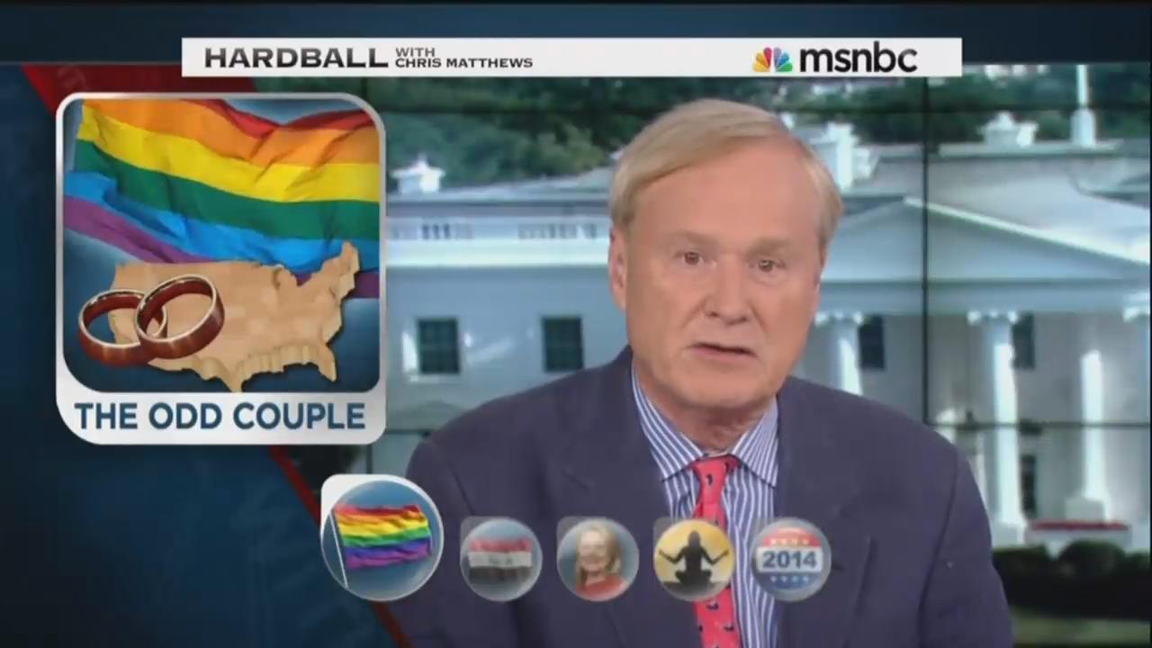Matthews wrapped up the conversation by taking a subtle shot at conservatives for their opposition to gay marriage, asserting that “people who are gay or straight, who care about this country, I’ve always said we expand our democracy every couple years and this is one of the expansions. We're making this country better.”