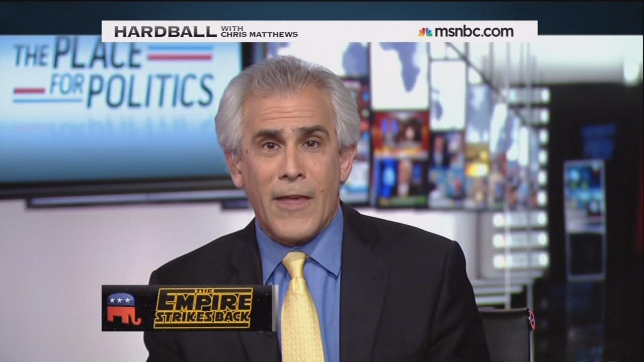 On the June 25 edition of Hardball, fill-in host Steve Kornacki and his guests discussed the implications of Thad Cochran’s surprising upset of Chris McDaniel in the Mississippi GOP Senate runoff. The panel mocked the Tea Party’s outrage at Thad Cochran over his courting of Democratic voters in the primary.