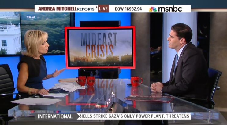 The day before, Andrea Mitchell Reports correspondent Ayman Mohyeldin parroted Hamas denials that they were using civilians as human shields. Today, Dermer criticized Mohyeldin for his analysis of Israeli-American relations, stating, “I just heard the report of Hamas questioning the US-Israel relationship which I can tell you is strong, it’s stronger than ever...your reporter in Gaza should not forget who Hamas is and what they are about."