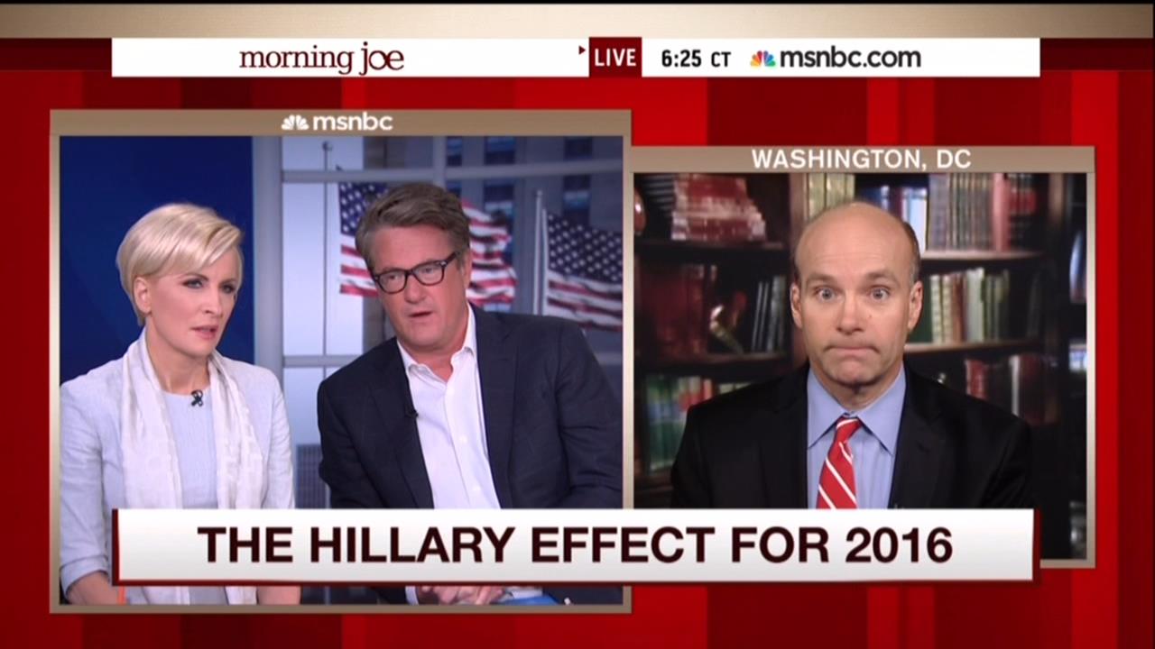 7:25 a.m. EasternJOE SCARBOROUGH, host: And to chief White House correspondent for Politico, Mike Allen with the Politico playbook. Mike, you have a story that’s gonna go up later today about the so-called Hillary effect for 2016. Tell is what the Hillary effect is.
