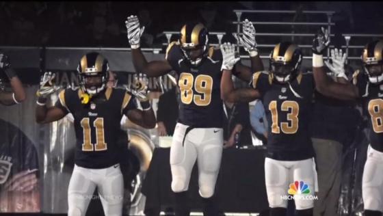 The ESPYs brought back the discredited Ferguson "Hands Up, Don't Shoot" narrative. In the awards show's opening montage, the St. Louis Rams players' protest gesture was shown while the narrator said, "sports inspires in so many ways, whether it's through ... simply a gesture." Ironically, the next line was "Sports has the power to connect us" - hard to think of a worse example of people connecting than Ferguson. Watch: