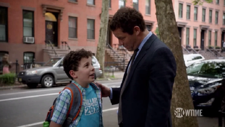 In the scene, Noah explains to his Clinton t-shirt wearing son why he and his wife are getting a divorce. Apparently no ordinary t-shirt would work for the scene and what better way to get the “vote Hillary” message out than exploit a little kid.