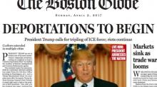 On April 9, 2016, the Boston Globe journalists imagined the horrific, dark future world of April 9, 2017. The Globe put together a fake news front cover with Donald Trump as president. One year later, the headlines haven’t aged well. This headline slimed Trump: “U.S. soldiers refuse orders to kill ISIS families.”