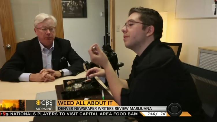 [ON-SCREEN HEADLINE: “Weed All About It: Denver Newspaper Writers Review Marijuana”]
