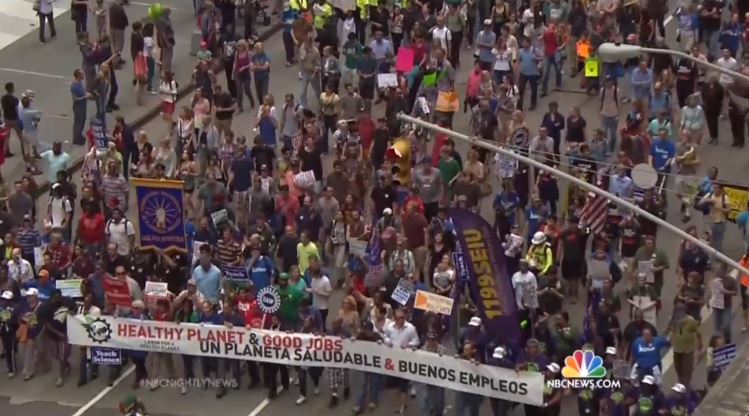 BRIAN WILLIAMS: Yesterday's coordinated marches calling attention to climate change drew some huge crowds in big cities, that includes an estimated 400,000-plus here in New York and while there were nay-sayers pointing to the mountains of trash left behind and the carbon footprint of the traffic jams that were caused by the march, it was a big coordinated statement nonetheless and the events and awareness campaign continued today.