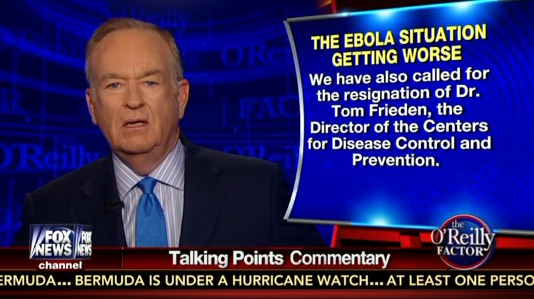 On Wednesday night, Bill O’Reilly blasted the Centers for Disease Control and Prevention (CDC) Director Thomas Frieden and the federal government’s response to the Ebola epidemic during his Talking Points Memo at the top of his Fox News Channel (FNC) program.