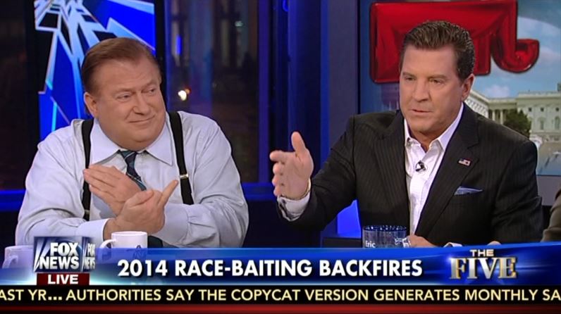 During Thursday’s edition of The Five on the Fox News Channel (FNC), co-host Bob Beckel displayed his middle finger toward fellow panelist Jesse Watters during a discussion about how race-baiting by Democrats in the runup to the 2014 midterm elections backfired.