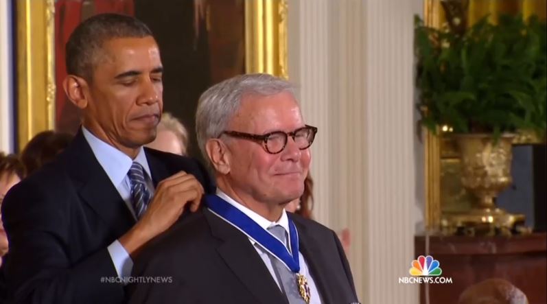 President Barack Obama awarded the Presidential Medal of Freedom to 18 individuals on Monday afternoon with one of them being former NBC Nightly News anchor and reliably liberal supporter Tom Brokaw.