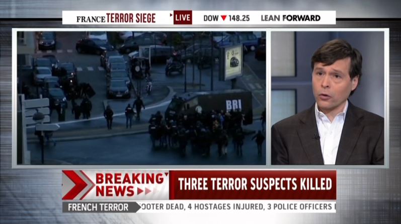In the midst of MSNBC’s coverage on the aftermath of the dual hostage situations in France that resulted in three terrorists being killed, MSNBC terrorism analyst Evan Kohlmann railed against the “openly racist,” “prejudice[d],” and “hateful” National Front party in France as being “as much of the problem as jihadists are” for the country.