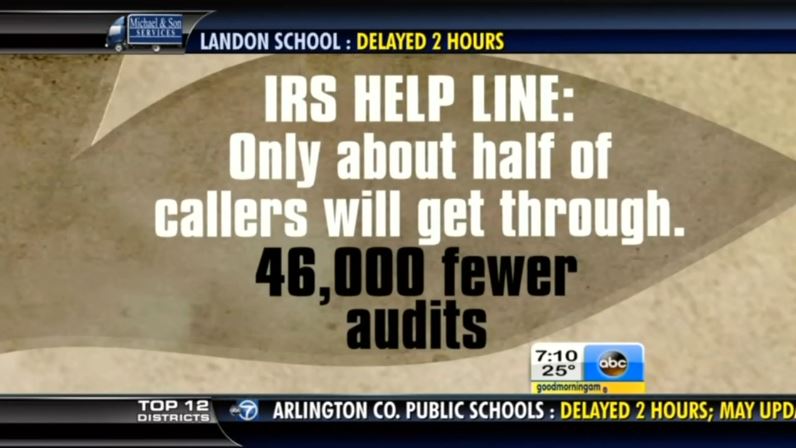 On Wednesday, ABC’s Good Morning America had a segment that promoted how, due to budget cuts, the IRS will be forced to “delay those refund checks,” “increase the risk of identity theft," conduct “46,000 fewer audits,” and maintain an “IRS help line” that “is going to become much less helpful.”