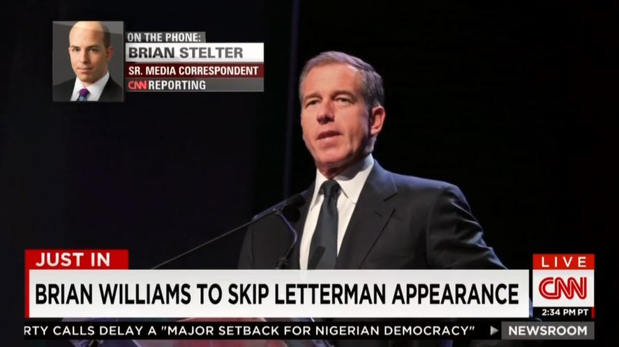 Late Sunday afternoon, CNN’s Brian Stelter reported the latest information in the ongoing Brian Williams controversy with the news that the NBC Nightly News anchor has cancelled an appearance on CBS’s The Late Show with David Letterman after reports initially suggested that he was planning to use it to clear the air and answer the many questions surrounding him.