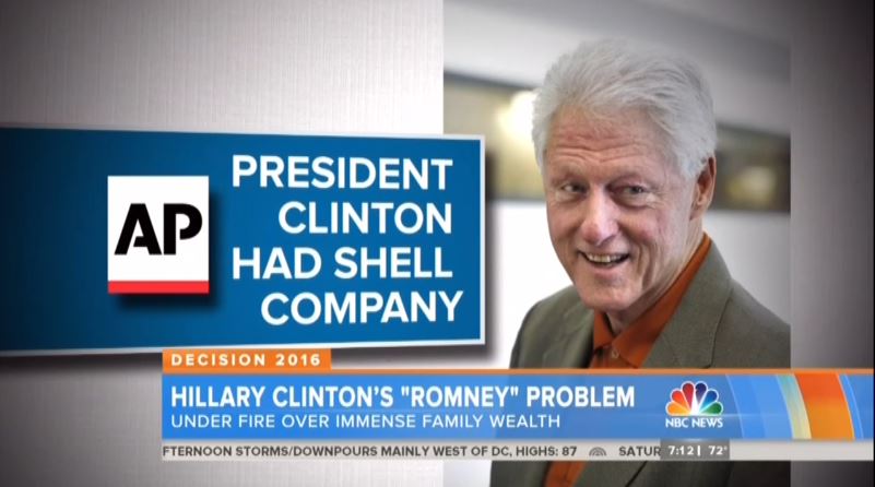 On that topic, Mitchell became the first network reporter across the “big three” of ABC, CBS, and NBC to bring up the shell company: “Fueling the controversy, recent revelations from the AP that Bill Clinton had a shell company, “WJC, LLC,” in which money could pass unreported.”