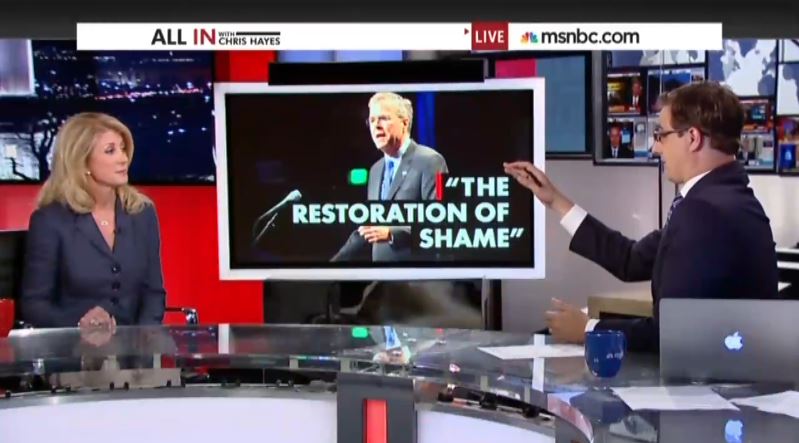 On Thursday night’s edition of MSNBC’s All In, host Chris Hayes turned to none other than former Texas Democratic gubernatorial candidate and abortion activist Wendy Davis to trash Jeb Bush over his views concerning the need for two-parent households and Senator Lindsey Graham’s introduction of a bill in the Senate that would prohibit abortions after 20 weeks.