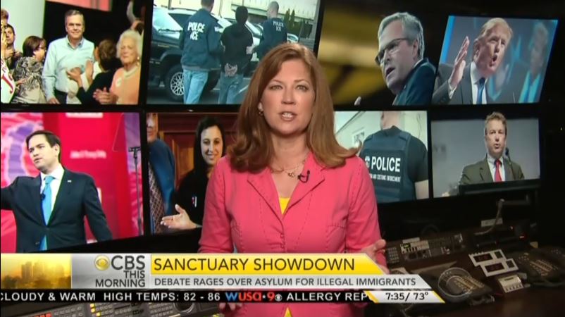 In contrast to the CBS This Morning segment, Thursday’s CBS Evening News aired a report on sanctuary cities from correspondent John Blackstone that did not inject Republican politics into the issue.