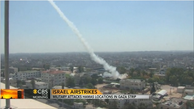 CBS “Evening News” anchor Scott Pelley began his piece by saying the Israeli military had launched attacks into Gaza, “responding to rockets that were launched into Israel by Islamic militants.” He added that the “militant group Hamas won an election there in 2006.”