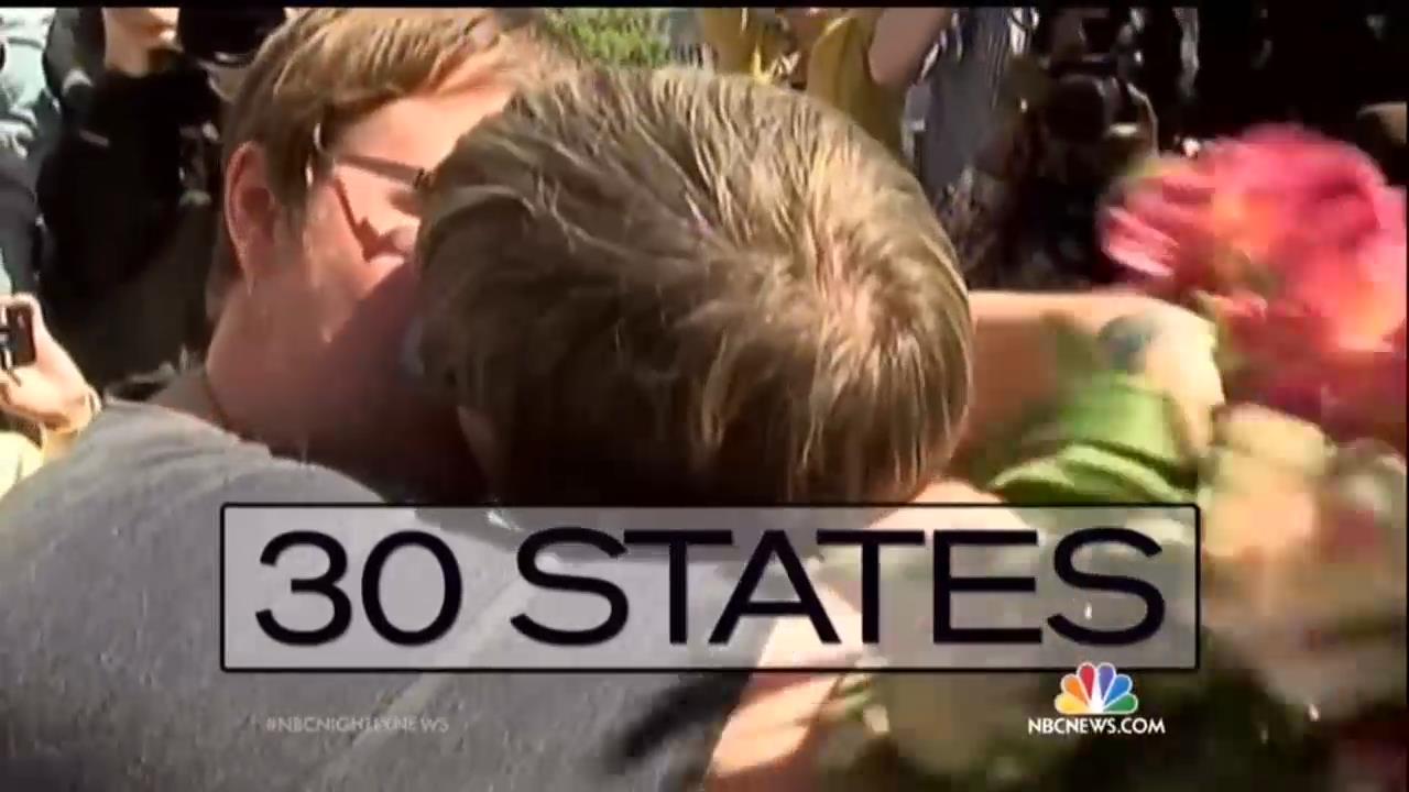 Over at ABC, “World News” anchor David Muir called the ruling, “the historic day at the Supreme Court.” He added that it meant, “more than half of America approving marriage for everyone.”