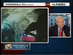 Leave it to Chris Matthews to shoe-horn in a crass political point against the Tea Party, even in the midst of a heartwarming story like the rescue of the Chilean miners. On Wednesday's Hardball, the MSNBC host, along with his guest Richard Trumka, president of the AFL/CIO, claimed those miners would never have survived if they had followed the "every man for himself" philosophy of the Tea Party crowd.