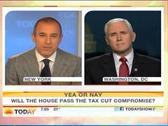 On Thursday's Today show, NBC's Matt Lauer pushed Mike Pence to compromise on the tax deal to get the measure passed before Christmas as he hectored the Indiana Republican Congressman that "there are things in this package that neither side likes, but that's the basis of compromise." Lauer even attempted to start an intramural fight between Republicans as he threw the words of Congressman Paul Ryan in Pence's face, as seen in this exchange: