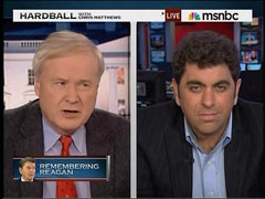 MATTHEWS: Eugene Jarecki's documentary Reagan debuts tonight on HBO. Thank you, Gene. It's always interesting into these character studies. And I'm your classic viewer because I grew up watching Ronald Reagan on GE theater, every Sunday night at 9. It was number three. It was in the top ten almost all the time. I really liked the guy. Then I disagreed with his politics and then I liked him again as an historic figure. I'm one of your mixed up guys. What do you make of him, in terms of the bad side of him? I want to talk about the part you didn't put in, perhaps, in the documentary. He didn't really care about the environment. He seemed to have a hard time figuring out the role that social policy, Social Security, Medicare, how they helped real people. Yet if you he confronted a case of a real person in trouble he would sort of write a check to that person. How do you put that together?