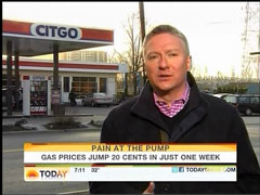 On Friday morning, NBC's Tom Costello couldn't close his Today show report on high gas prices without airing the proverbial soundbite from an angry gas station customer accusing oil companies of gouging the consumer. Costello even managed to taint Big Oil with the Watergate scandal, in his set-up for the perturbed gas pumper, as he pointed out one of the highest prices he found in Washington D.C. was "right in the shadow of the Watergate" adding, "customers across the country are increasingly suspicious of the oil companies."