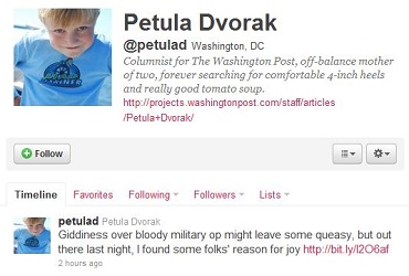 Dvorak even proudly tweeted her article saying the "Giddiness over bloody military op might leave some queasy."