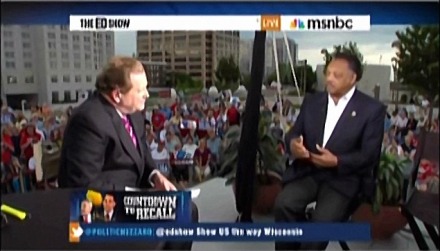 ED SCHULTZ: Last night I had chance to see firsthand the enthusiasm for this recall election. Reverend Jesse Jackson rallied hundreds of voters in northwest Milwaukee. He called this election one of the biggest moments in the history of our democracy. He compared it to Emmett Till’s lynching and Rosa Parks’ refusal to give up her seat. The Reverend also compared Governor Walker to Alabama’s governor George Wallace.