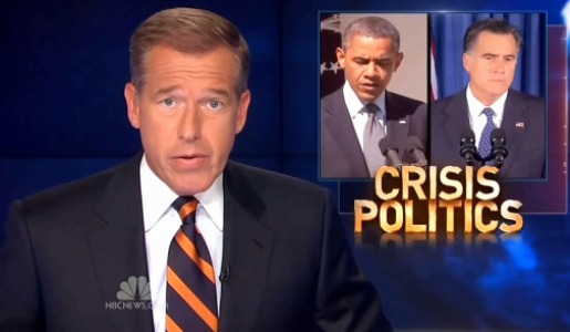 NBC's Brian Williams opened the Nightly News telling viewers: "Romney is taking fire tonight for the way he went on the attack politically...somehow [Romney] wanted today to be about America apologizing for its values, even after it became clear today was about the death of an American ambassador and others." CBS Evening News anchor Scott Pelley dutifully noted: "Democrats said the governor had injected politics into a tragedy." Over on ABC's World News Diane Sawyer announced: "Republican Presidential Candidate Mitt Romney under fire for comments he made about the upheaval as it was unfolding." (video after the jump)