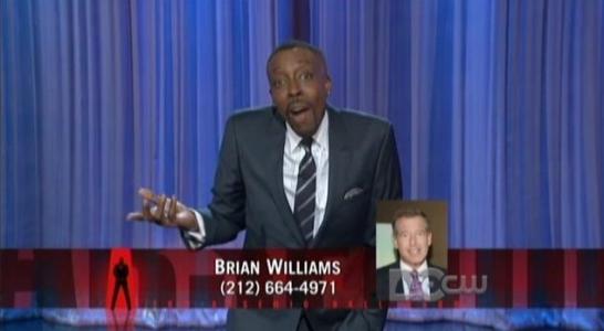 After putting up a still from a New York Times article by Bill Carter that didn’t include his photo Hall asked: “See if you notice someone missing...You know, brown ink is more expensive maybe?” Then, after playing a clip from NBC Nightly News anchor Brian Williams, that also failed to include him in a montage, Hall hilariously pondered: