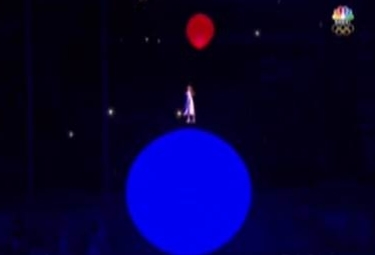 Not to be outdone, NBC's Meredith Vieira followed this later in the coverage with what might be remembered as the most unintentionally hilarious moments in the history of television. At that point in the ceremonies, a little girl held aloft by wires let go of a large red balloon (audio) --